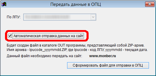 Теперь при формировании данных в диалоге должен появиться флажок для автоматической передачи данных на сайт (см. рисунок). Если его установить, после формирования запустится программа, соединяющаяся с сервером и отправляющая данные на сайт. Программа сработает автоматически и остановится только, если в процессе передачи возникнут какие-нибудь ошибки (тогда их можно будет увидеть). Если же программа отработает и закроется, значит процесс передачи файла прошёл успешно.